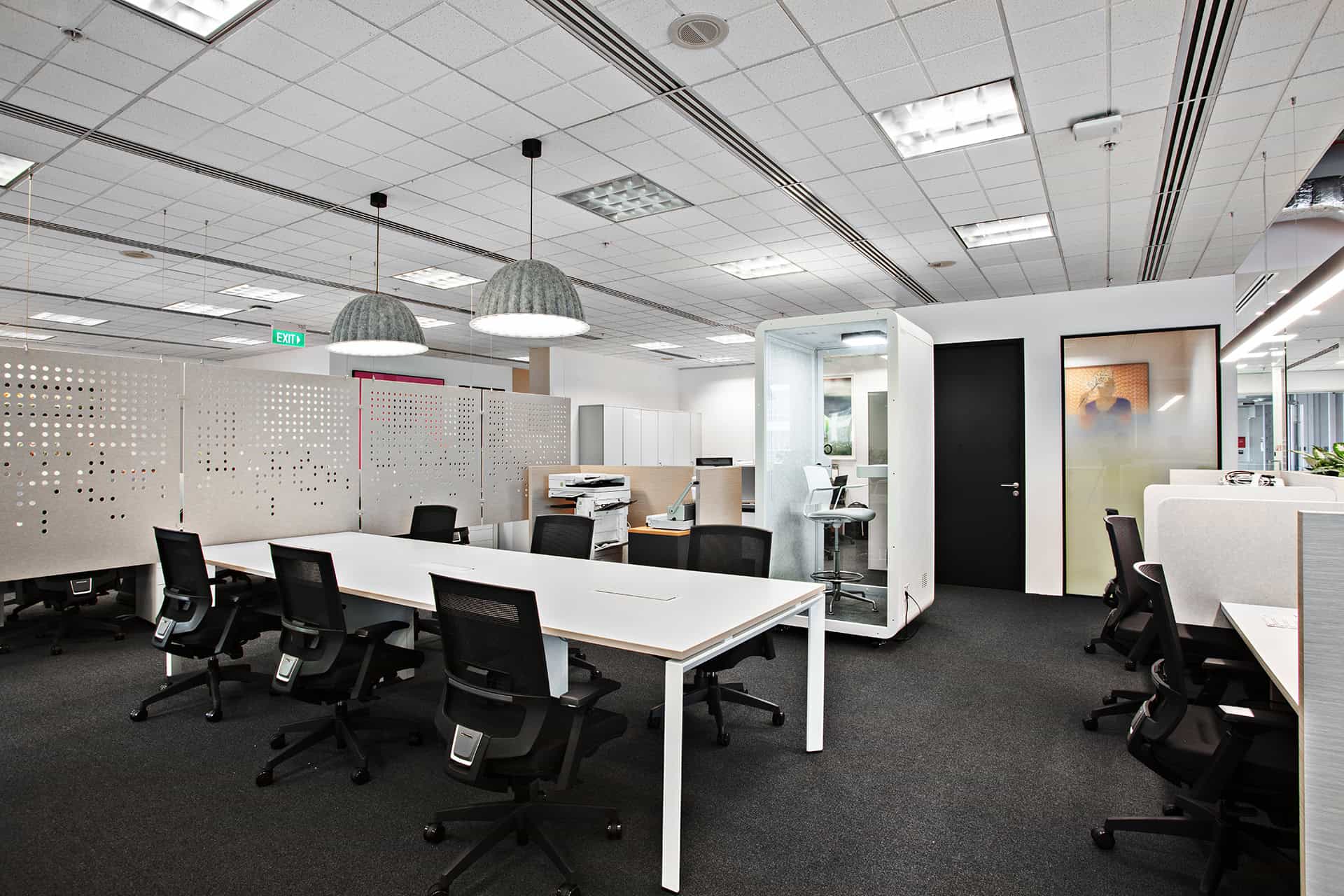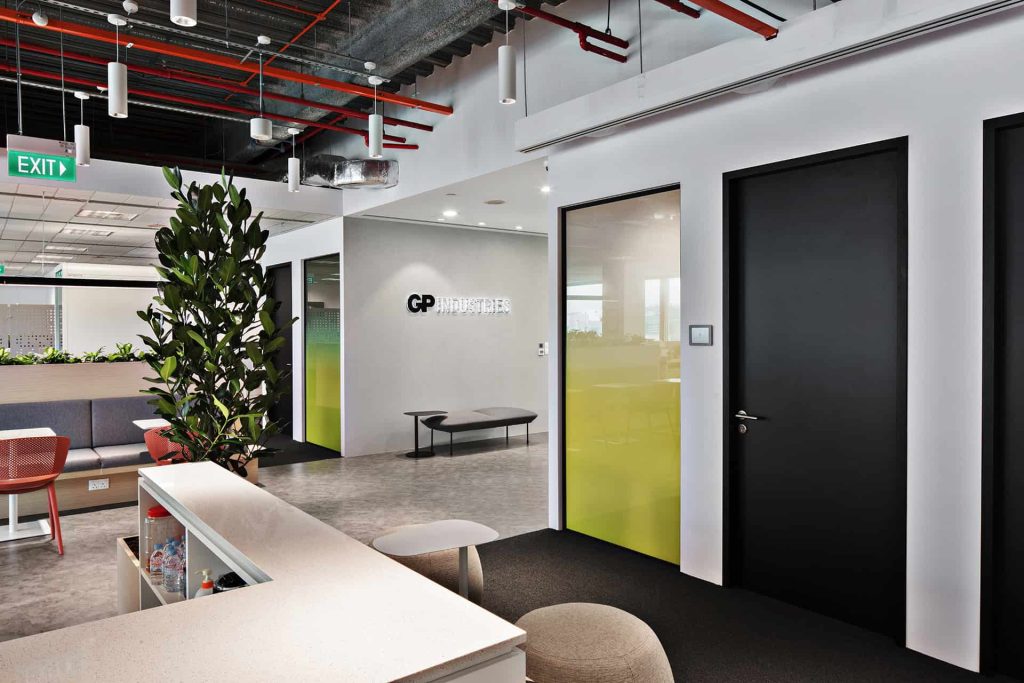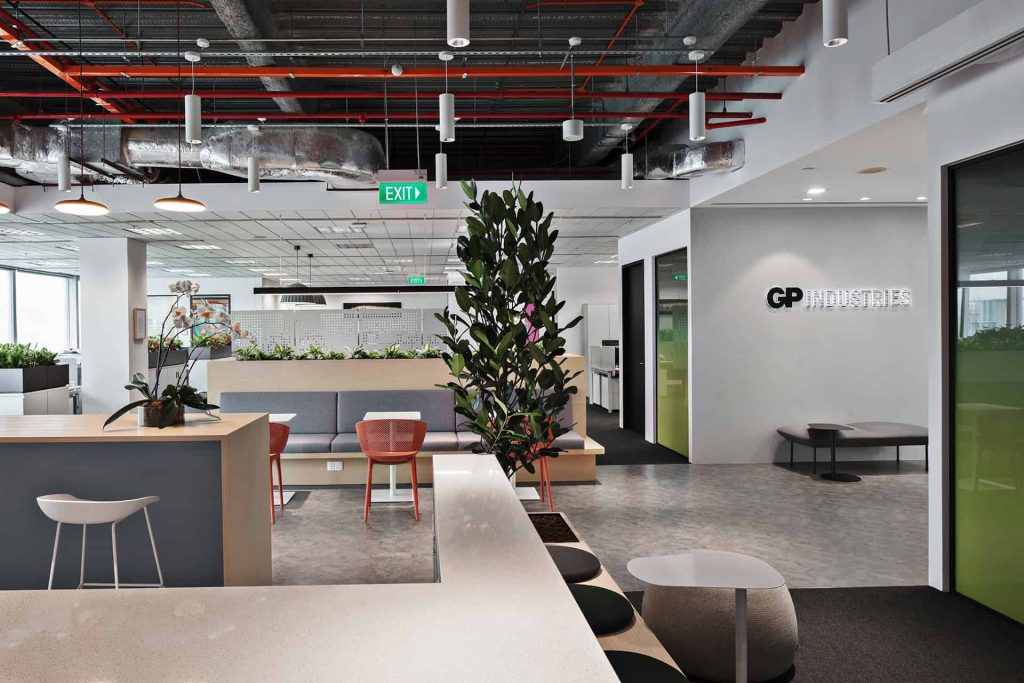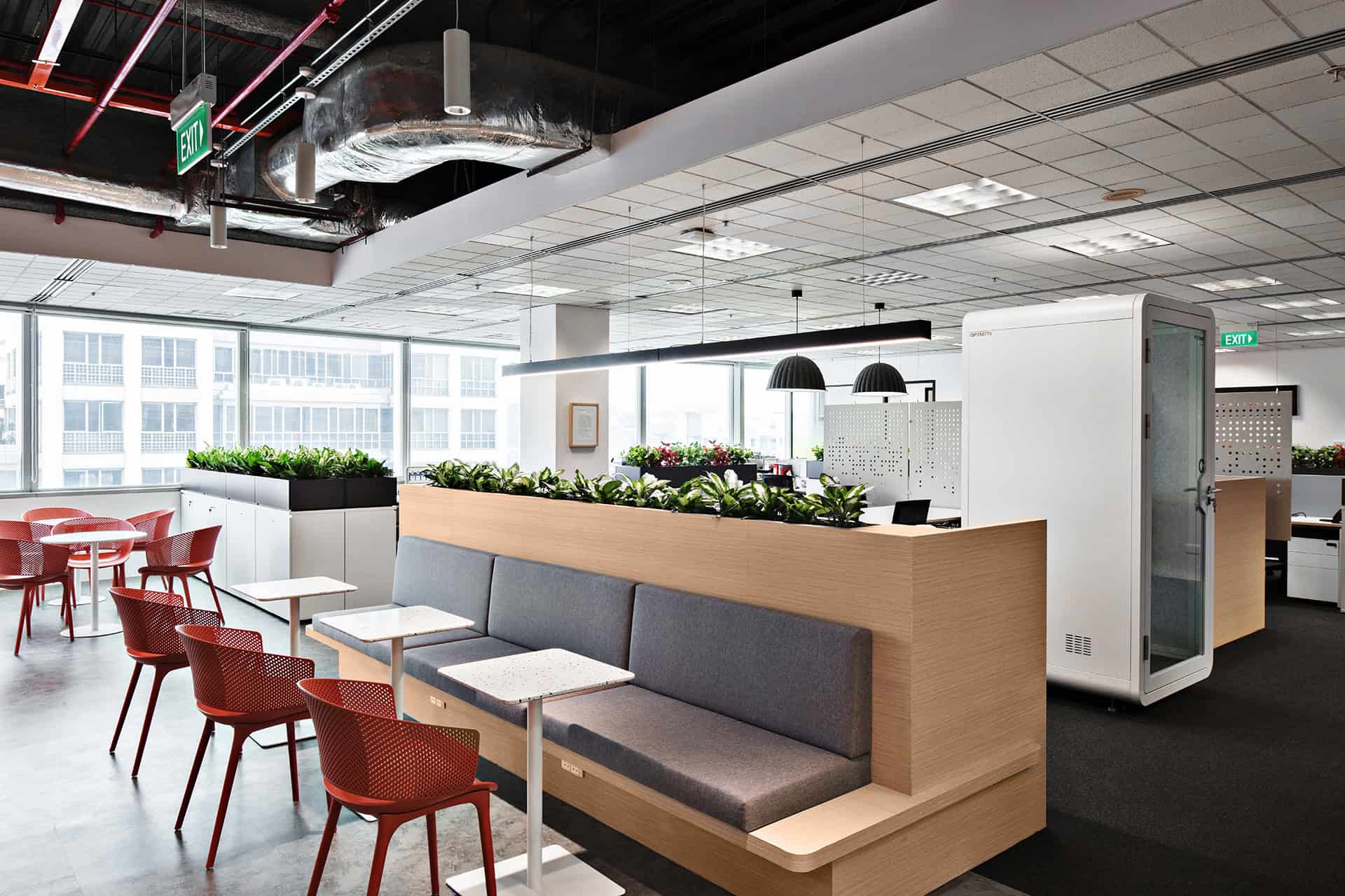 to auditorium. Durable yet tactile materials pair with greenery to soften the tech edge, while an activity- based layout keeps the space dynamic, adaptable, and ready for teams on the move.”