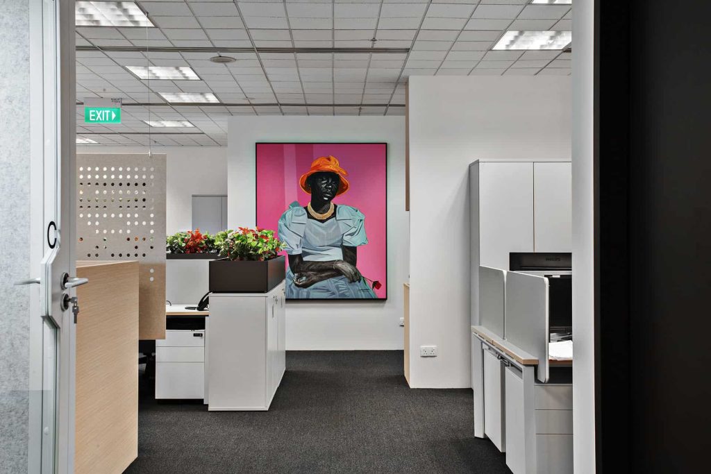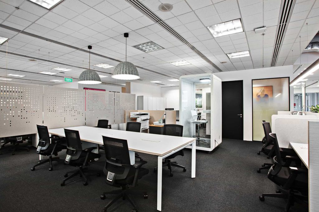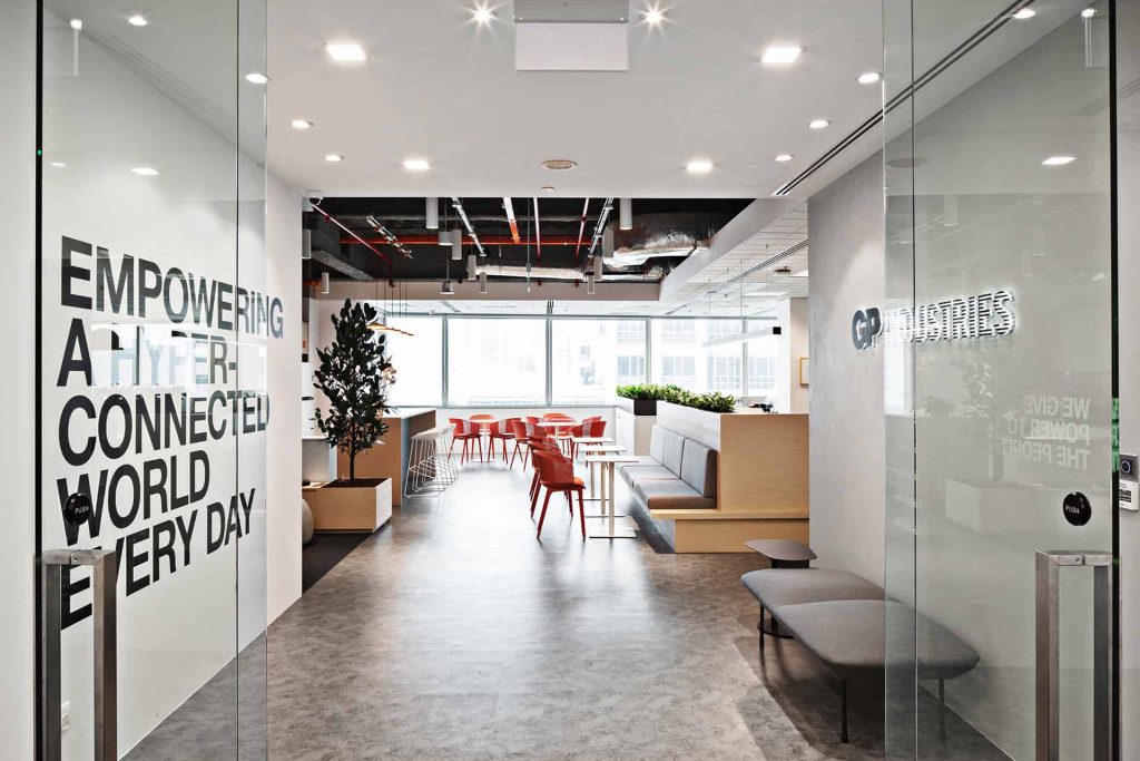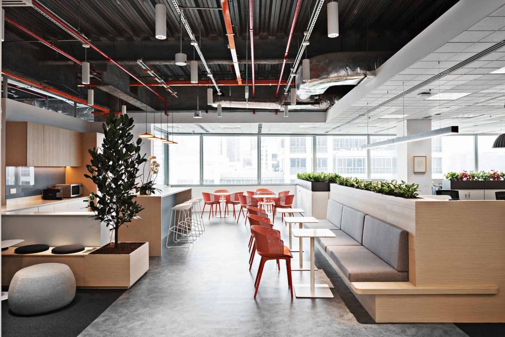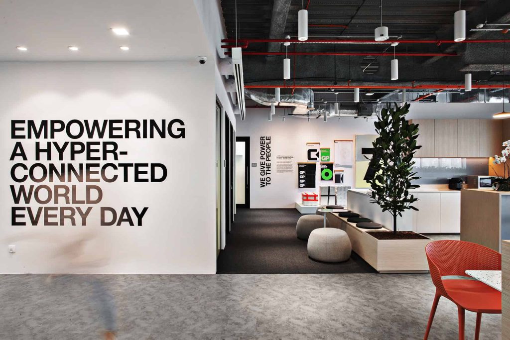 “A vibrant, brand-driven workplace that embodies Workato’s spirit of integration. Bold color-blocked walls and signage in Workato blue with lively accents energize the floor, guiding people through focus pods, open collaboration lounges, and a pantry that transforms into an event hub. The oversized