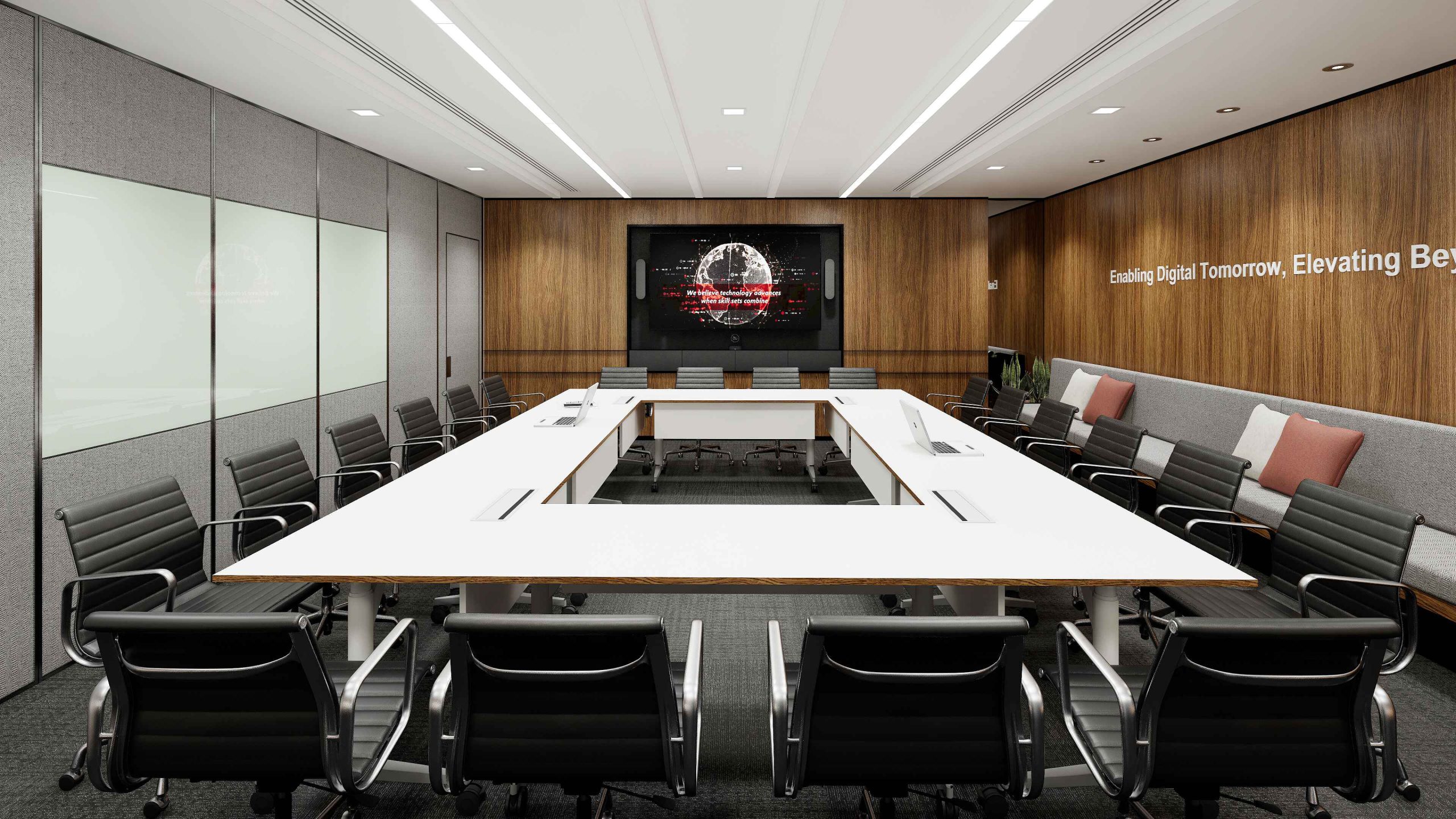 Task to design an open office that promotes collaboration. Design also to allow for regional executive level meetings. This is the first relocation for the company in decades and thus a complete transformation from existing office design.